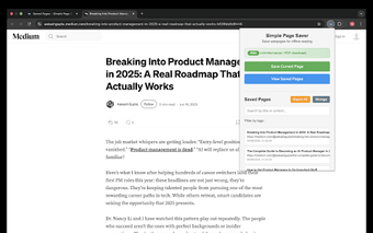 Simple Page Saver는 오프라인 보기용으로 웹 페이지를 저장하고자 하는 사용자를 위해 설계된 Chrome 확장 프로그램입니다. 원클릭 저장 기능을 통해 사용자는 텍스트, 이미지 및 형식을 포함한 전체 웹 페이지를 손쉽게 보존할 수 있습니다. 이 도구는 인터넷 접근에 대한 걱정 없이 중요한 정보를 보관해야 하는 연구자, 학생 및 전문가에게 이상적입니다. 이 확장 프로그램은 제목이나 콘텐츠로 저장된 페이지를 빠르게 찾을 수 있는 스마트 검색 기능과 날짜별로 저장된 페이지를 정리할 수 있는 옵션도 포함되어 있습니다.